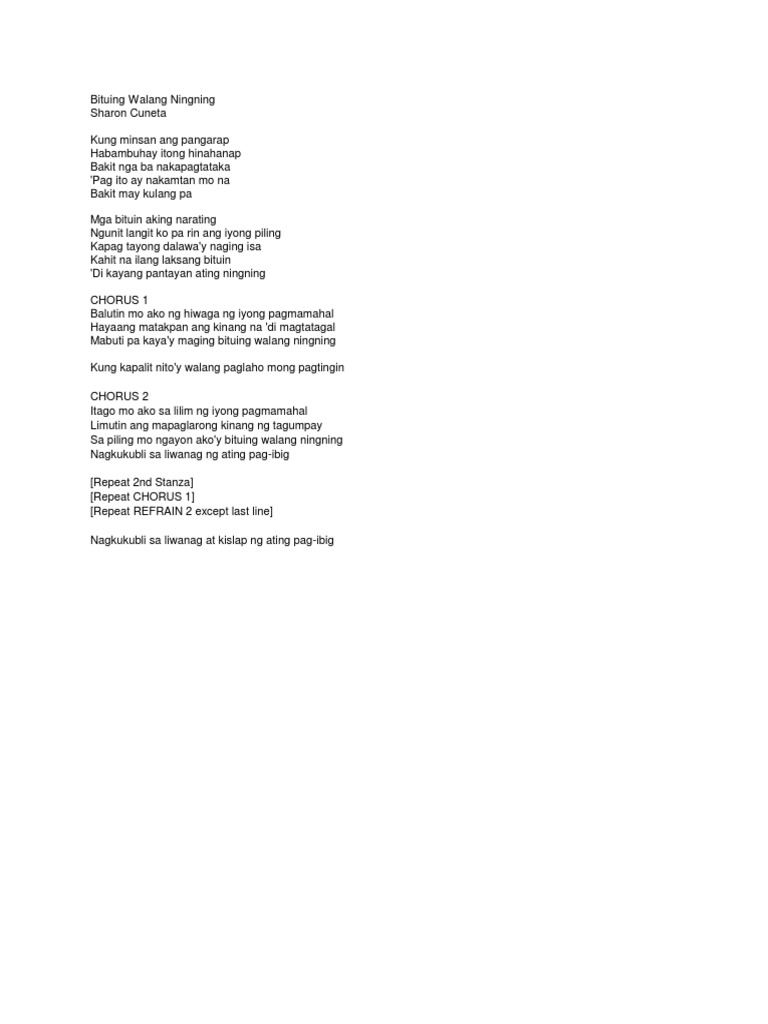 Bituing walang ningning Lyrics. Watch the video for Bituing Walang Ningning from Sharon Cunetas Sharon 18 Greatest Hits Vol. Bituing Walang Ningning has come a long way.